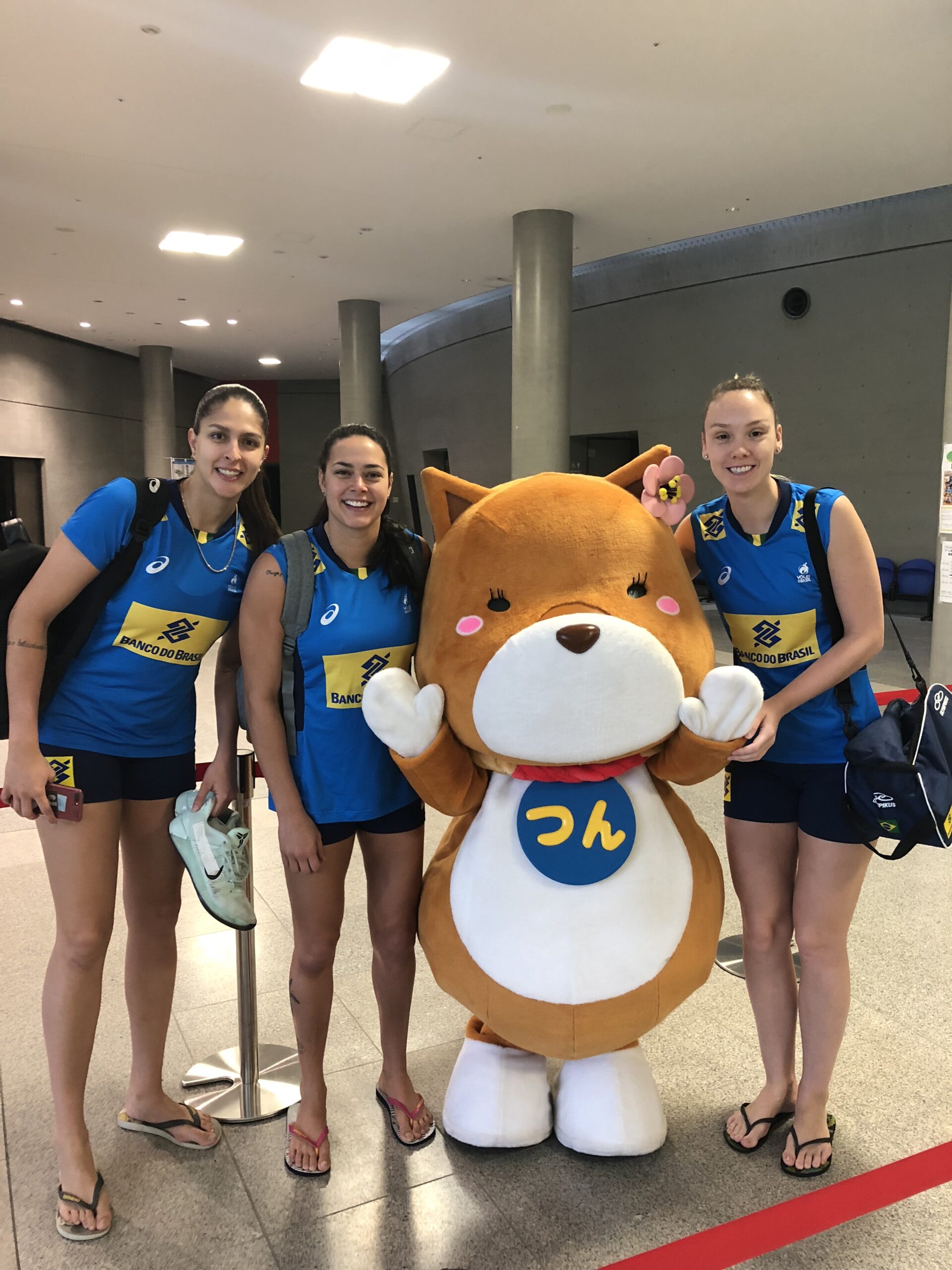 怪我のためチームを離脱したドルシラ・コスタ選手に代わり、合流したジャケリネ・カルバリョ選手(写真中央)。人気、実力ともに、ブラジルを代表するバレーボール選手です。