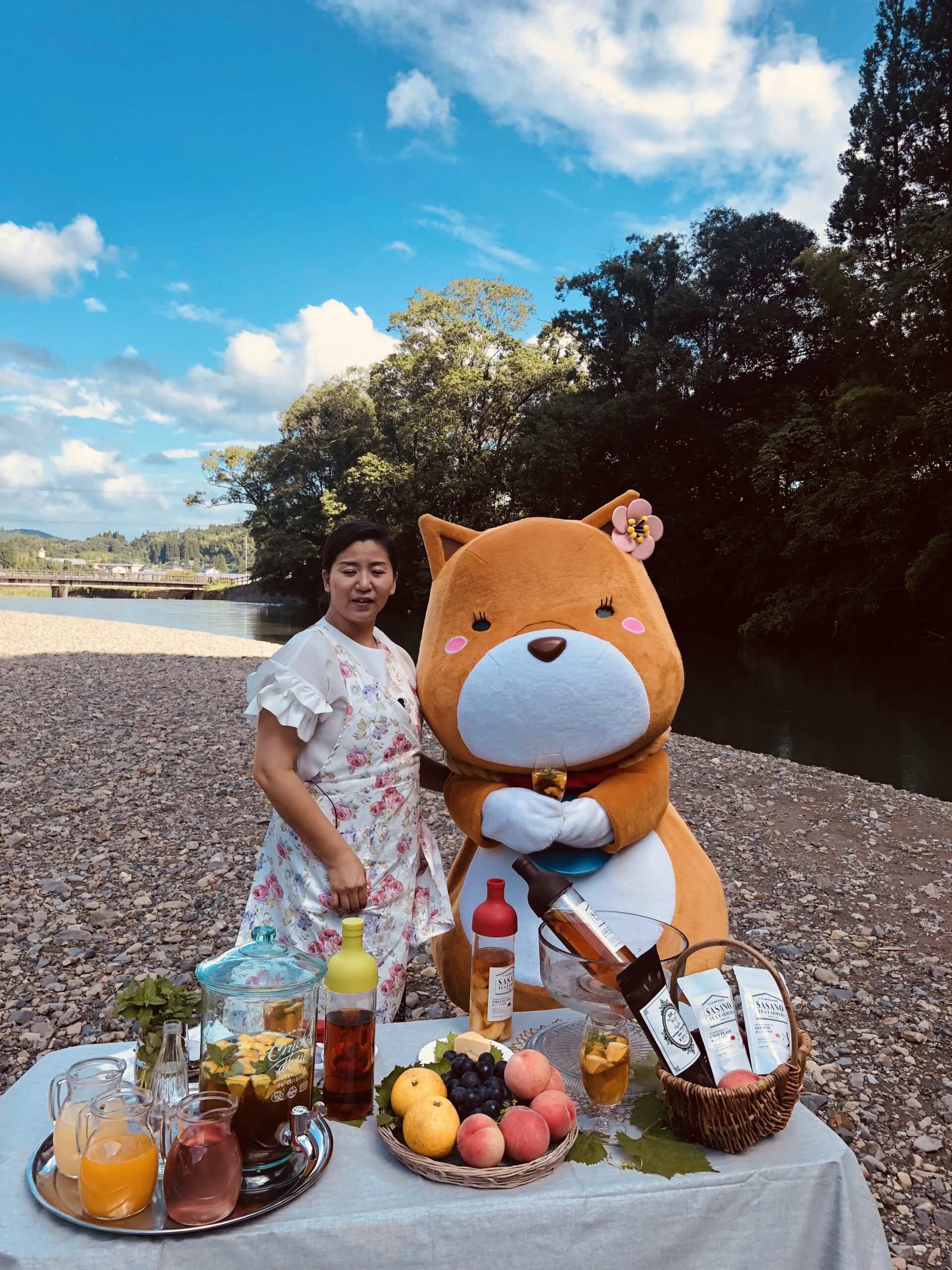 笹野製茶代表、笹野千津子さんと、東郷出身のつん。「お茶の文化を若い方にも楽しんでもらえるような、お茶づくり、楽しみ方、場の提供をしていきたい」と語る千津子さん。薩摩川内市東郷産のフルーツと紅茶のマリアージュ、この夏ぜひ、お楽しみください。