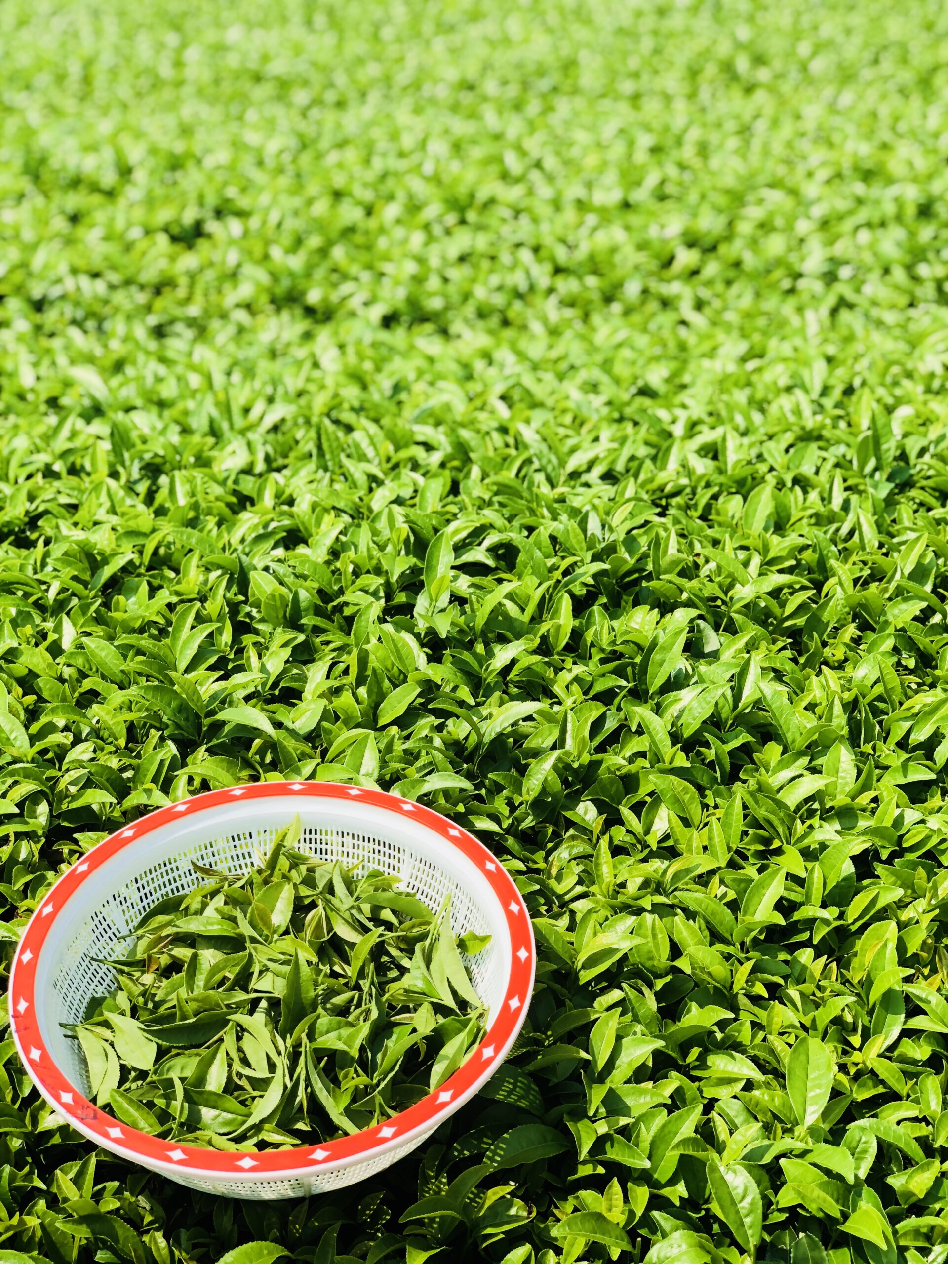 こちらの品種は「やぶきた」。新芽の”一針二葉”を摘み取ります。