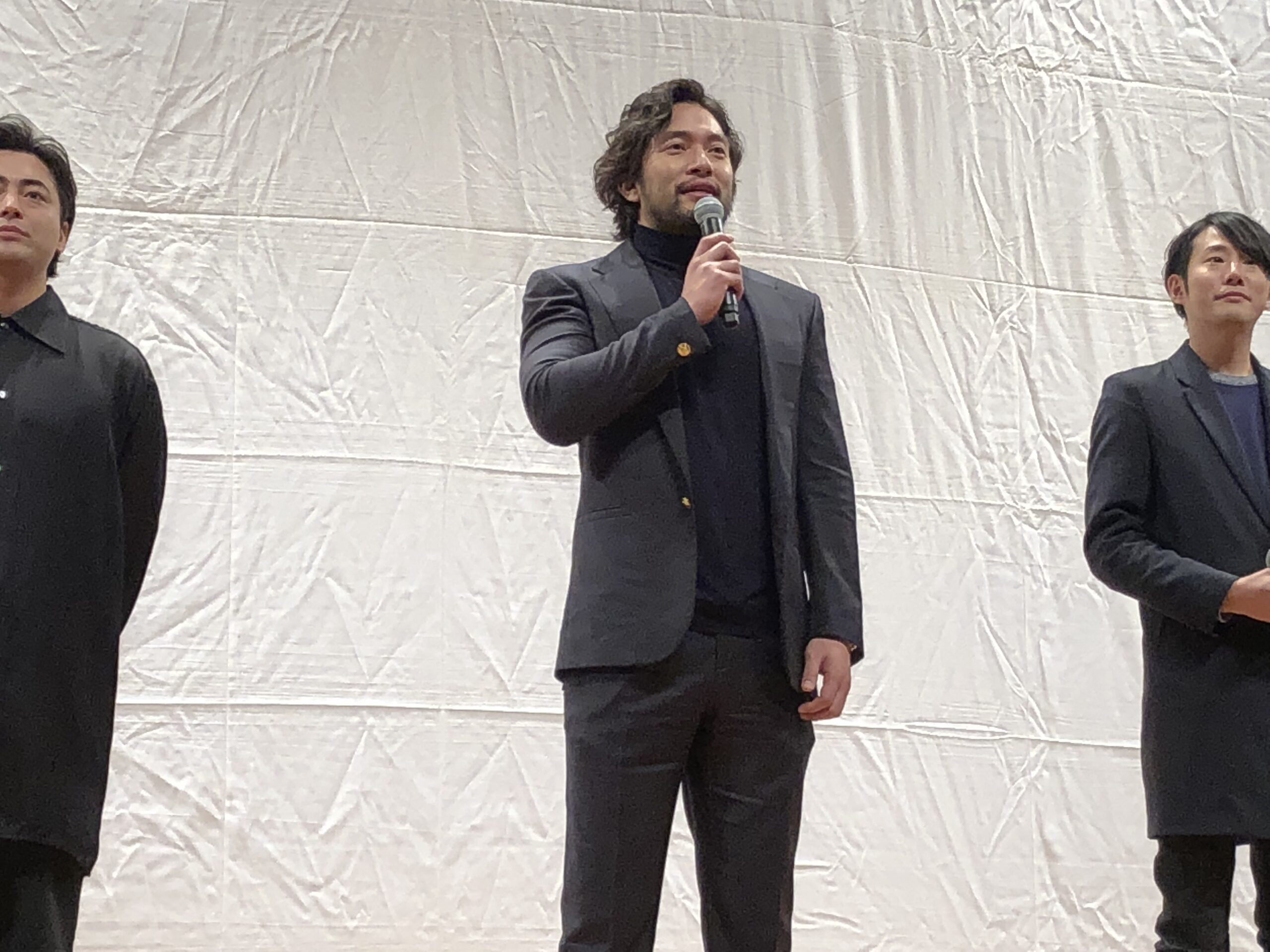 1月12日(土)、薩摩川内市国際交流センターにて先行上映会&舞台挨拶が行われ、ここ、薩摩川内市ご出身の山田孝之さん(プロデューサー)、阿部進之介さん(企画・主演)、藤井道人監督(監督・脚本)が登壇しました。