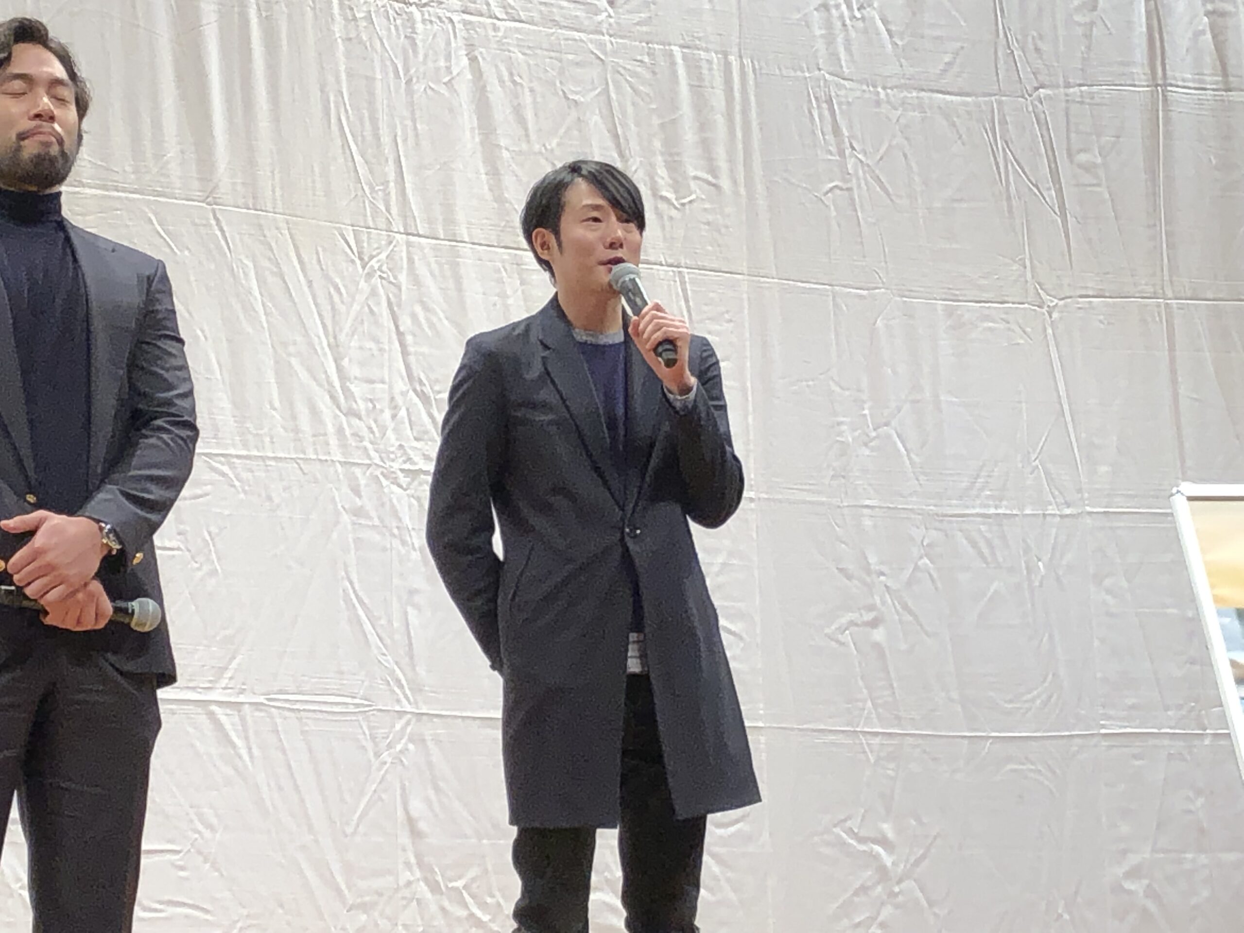 「…来たばっかりで(笑)今回は、孝之(山田)の地元ということで僕も来られて嬉しいですし、皆さんが本当に温かく迎えてくださって、劇場でお客さんの雰囲気が違うのですが、これが鹿児島か!という思いで立っております。」