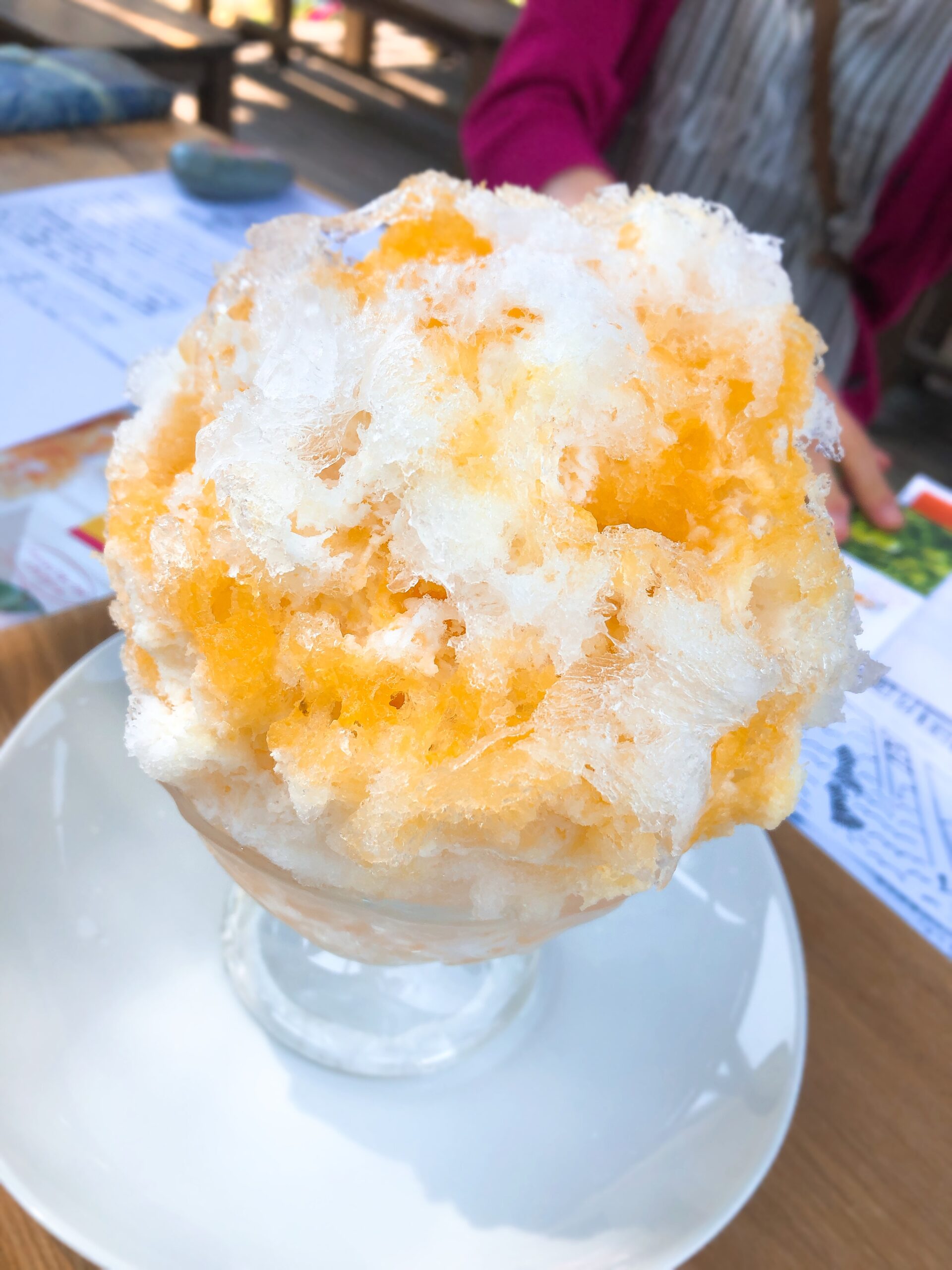 今回は、甑島の方にオススメして頂いた「パッションミルク」を頂きました!一口入れた瞬間に驚いたふわふわの氷!!そして、濃い甘さのフレッシュなパッションフルーツのソースが氷の中までしっかり染み込んでいて、上からかかっているミルクが全体をまろやかにしてくれています。いつまでも食べ続けられそうな南国感溢れる美味しいかき氷です。