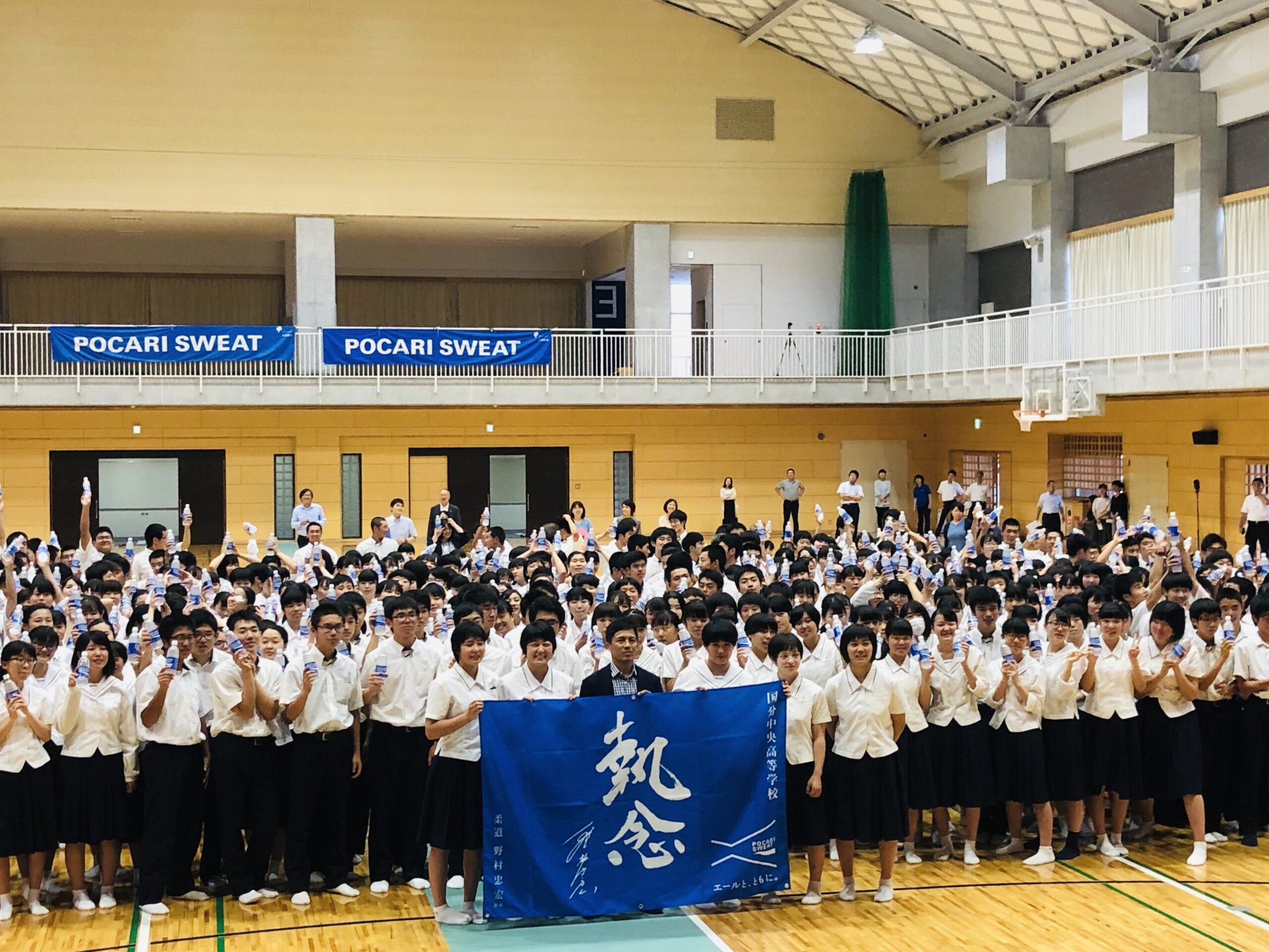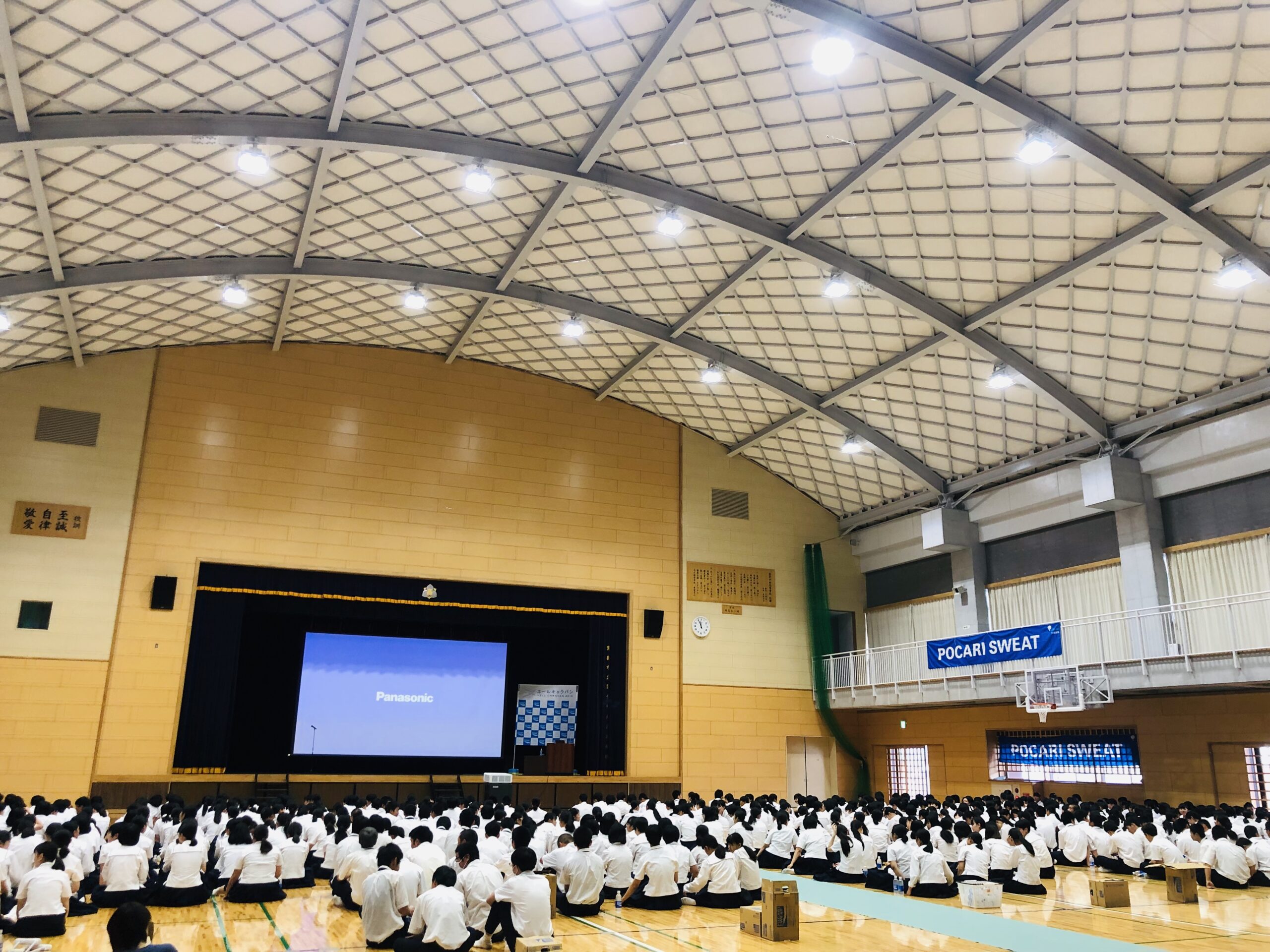 部活指導に先立ち、国分中央高校(970名在籍)の全校生徒を前に講演がありました。