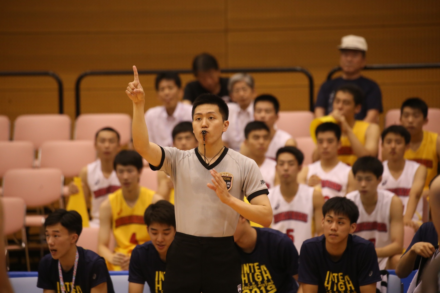 地元開催のインターハイ。川内高校男子バスケットボール部OBが、全国決勝のコートに立った。「自分でも信じられなかった」と話すのは、前田隼大さん(26歳)。鹿児島市生まれで、明和中から強豪校でバスケがしたいと、川内高校に進学。3年時に自身も高校総体に出場している。現在、鹿児島市の病院に理学療法士として勤務するかたわら、3年前にB級ライセンスを取得し、審判のキャリアをスタート。今回のインターハイに向けた鹿児島県下のノミネート審判40名に名を連ね、鹿児島県予選では男子決勝リーグ「鹿児島商業対れいめい」の笛を吹いた。B級の上位にA級、S級とある。JBAが示す基準では、B級=ブロック大会、A級=全国大会、S級=プロリーグ相当となっている。今年中にA級、来年にはS級取得を目指す前田さんにとって「今回のインターハイでは3回戦が目標だった」という。