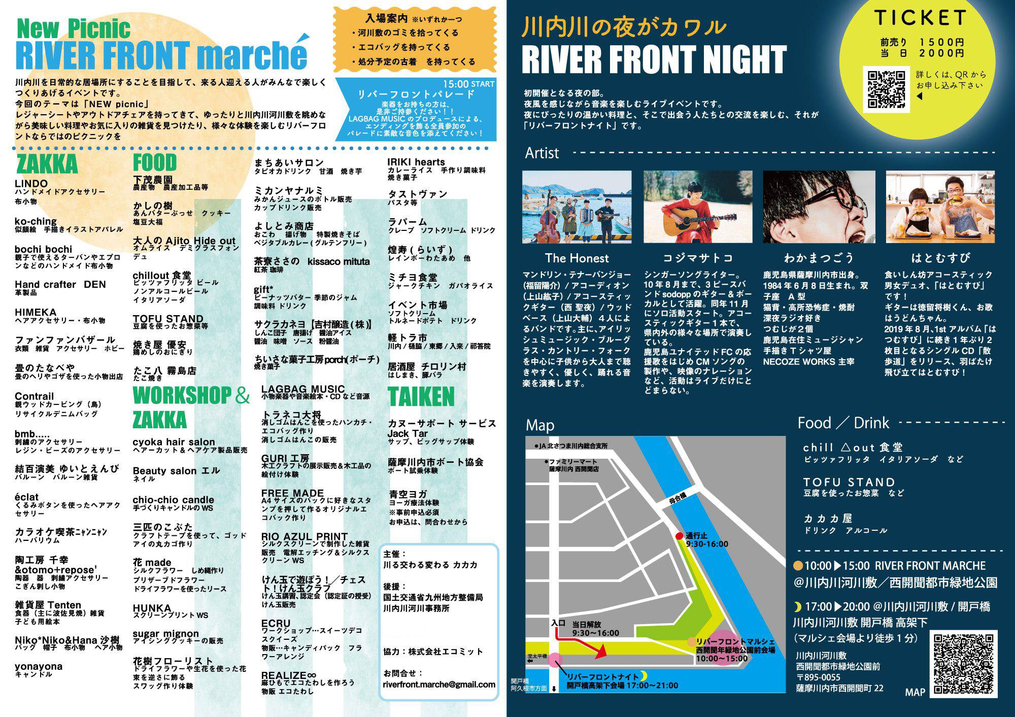 こちらも川辺に集まるイベントとしてすっかりおなじみとなったリバーフロントマルシェ。今年は「マルシェ」と「ナイト」の豪華2本立て!