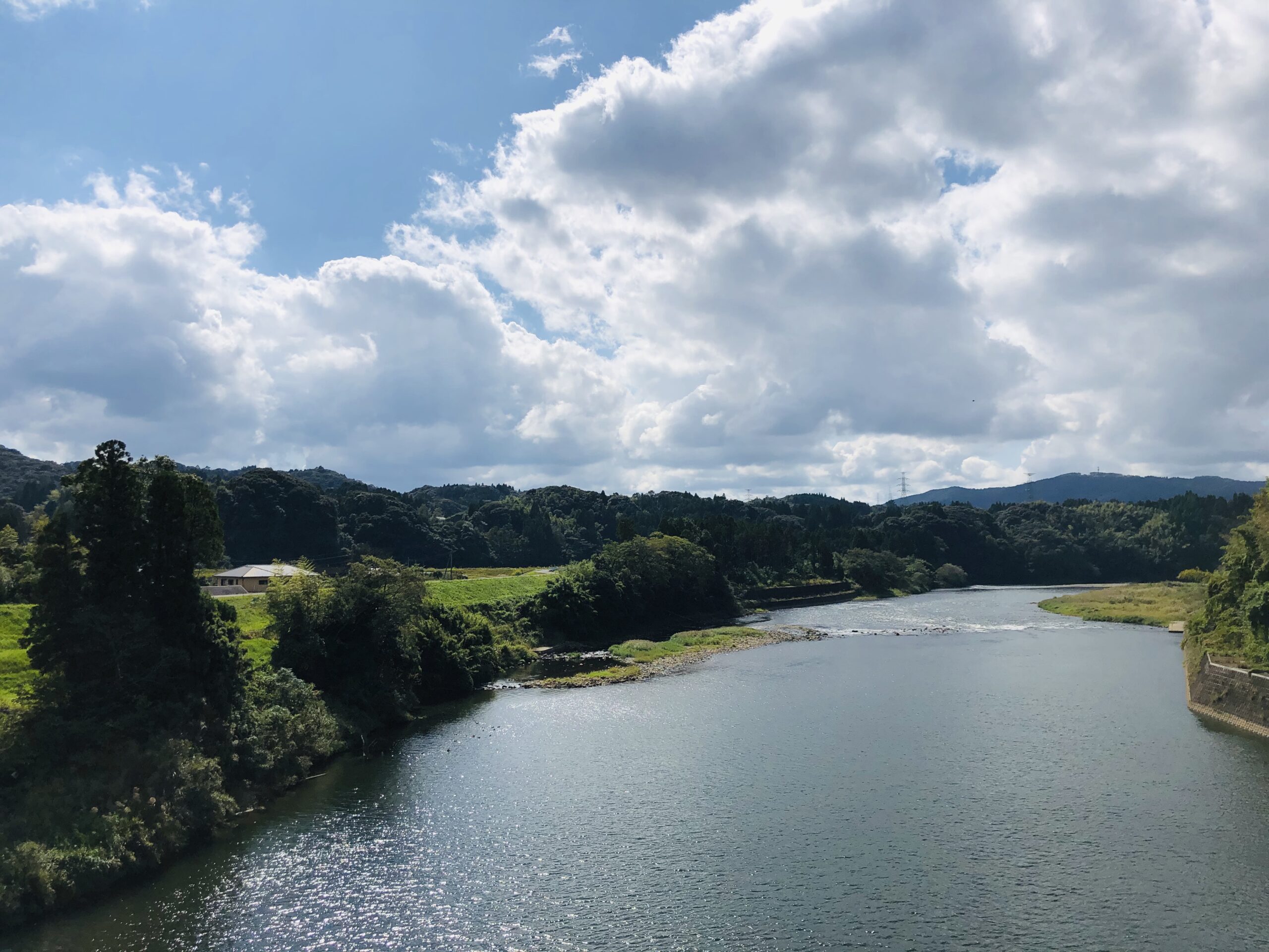 薩摩川内市の中心地から国道267号を東郷方面へ。川内川にかかる「久住橋」を渡ると、お店に着きます。赤い看板が目印。