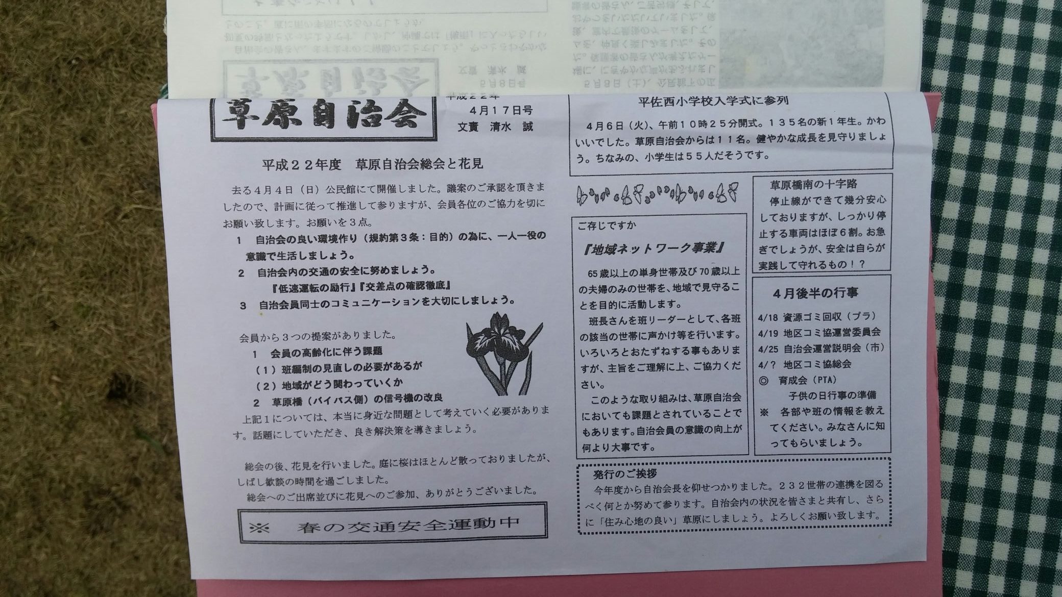 草原自治会民のための情報紙があります。