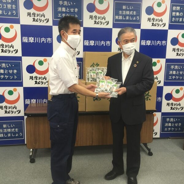 大綱緑茶塩あめ贈呈式~お茶のぶどう園より薩摩川内市へ
